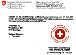 Die APTOMET AG hat in der vergangenen Woche offiziell die neue Akkreditierungsurkunde als Kalibrierlaboratorium für elektrische Messgrössen,…